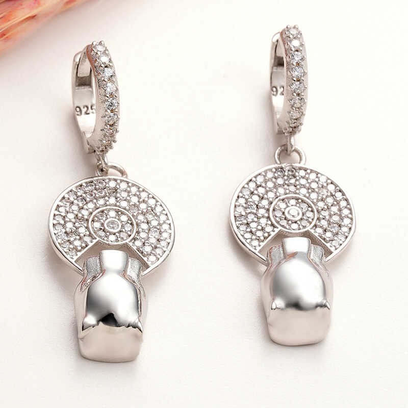 Gümüş Sallantılı Kaplan Figürlü Kadın Küpe
