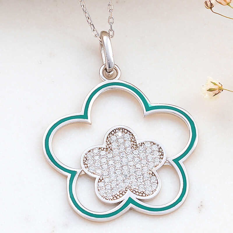 Özel günlerde kadınların tercihleri arasında ilk sıralarda yer alan kolyeler pek çok kadının kurtarıcısıdır. Spor ve klasik her kıyafetle kombinleyebileceğiniz çiçek desenli kolye, çok uygun fiyatla karşınızda. Zarif çiçek motifi üzerine işlenen küçük beyaz zirkon taşlarla desteklenmiş bu modelle şıklığınızı tamamlayabilirsiniz. Bu kolye modeli 925 ayar gümüşten imal edilmiştir. Gümüş üzerine rodyum kaplama yapılmıştır. Rodyum kaplama yapılan gümüş kolye modelleri parlaklığını uzun süre muhafaza eder ve oksitlenmesi gecikir. Tüm gümüş kolyelerde olduğu gibi gümüş çiçek desenli kadın kolye modeli de tamamen el emeği ile üretilmiştir. Gümüş ve değerli taşlar nedeniyle belirtilen ortalama ürün ağırlığında ± %10 sapma olabilmektedir.