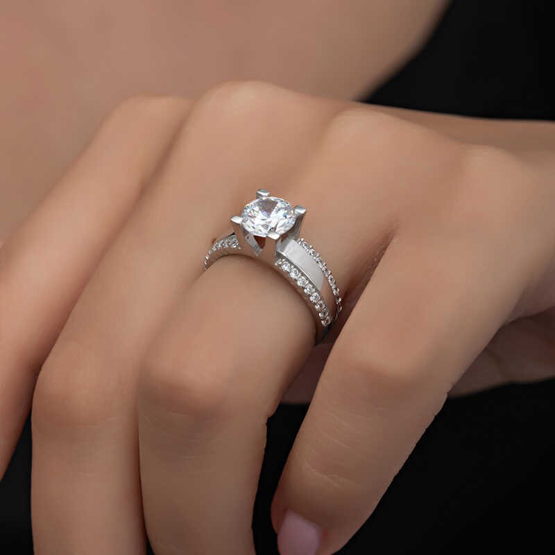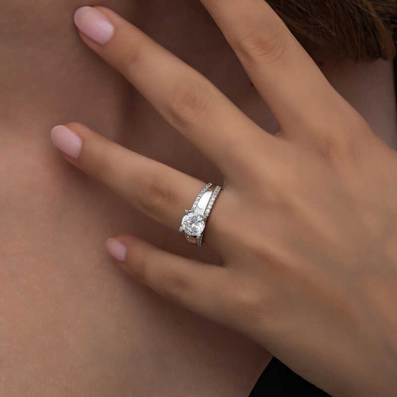 Bu özel tasarım tek taş yüzük 925 ayar gümüşten imal edilmiştir. Gümüş üzerine rodyum kaplama yapılmıştır. Rodyum kaplama yapılan kadın gümüş yüzük modelleri parlaklığını uzun süre muhafaza eder, oksitlenmesi gecikir. Yüzük üzerinde bulunan taşlar zirkondur. Sevdiğinize doğum günü, sevgililer günü ve özel günlerde verebileceğiniz mükemmel bir hediye seçeneğidir. Gümüş kadın yüzük modellerimizin tamamında olduğu gibi bu tek taş kadın yüzük de tamamen el emeği ile üretilmiştir. Gümüş ve değerli taşlar nedeniyle belirtilen ortalama ürün ağırlığında ± %10 sapma olabilmektedir.