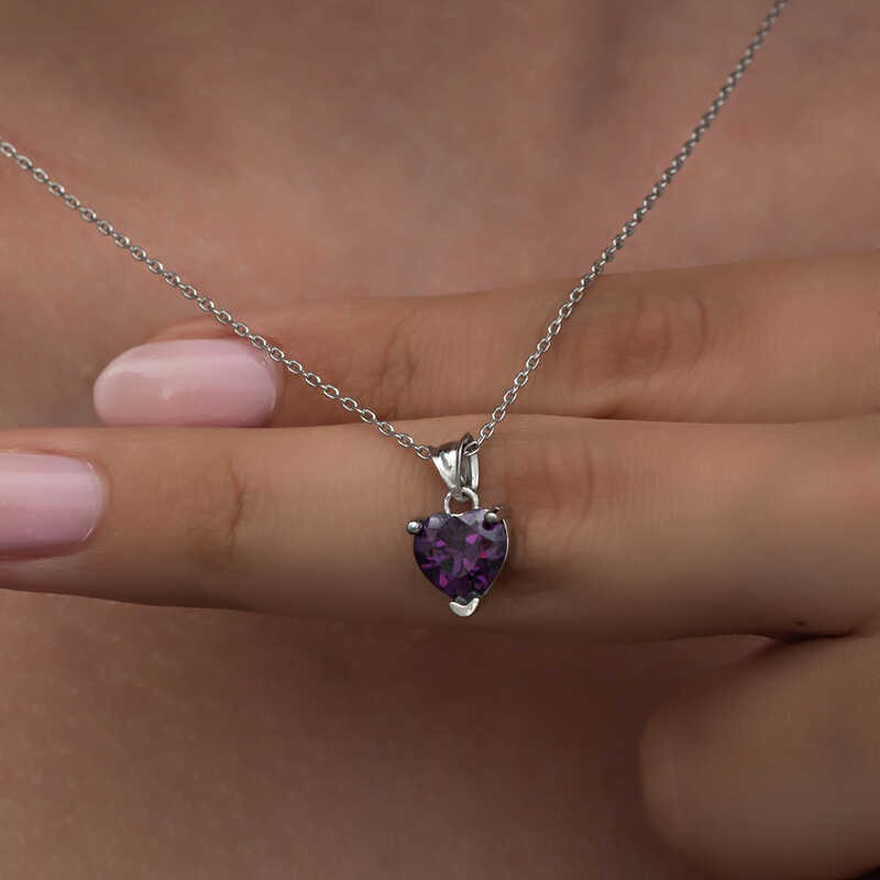 Gümüş Mor Taşlı Kalpli Kadın Kolye