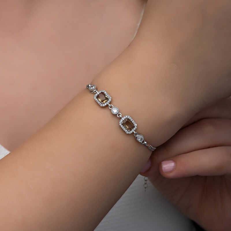 Gümüş Kare Zultanit Taşlı Kadın Bileklik