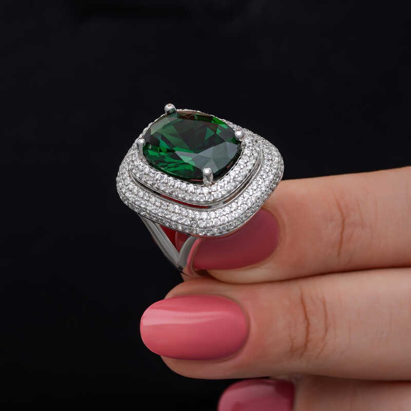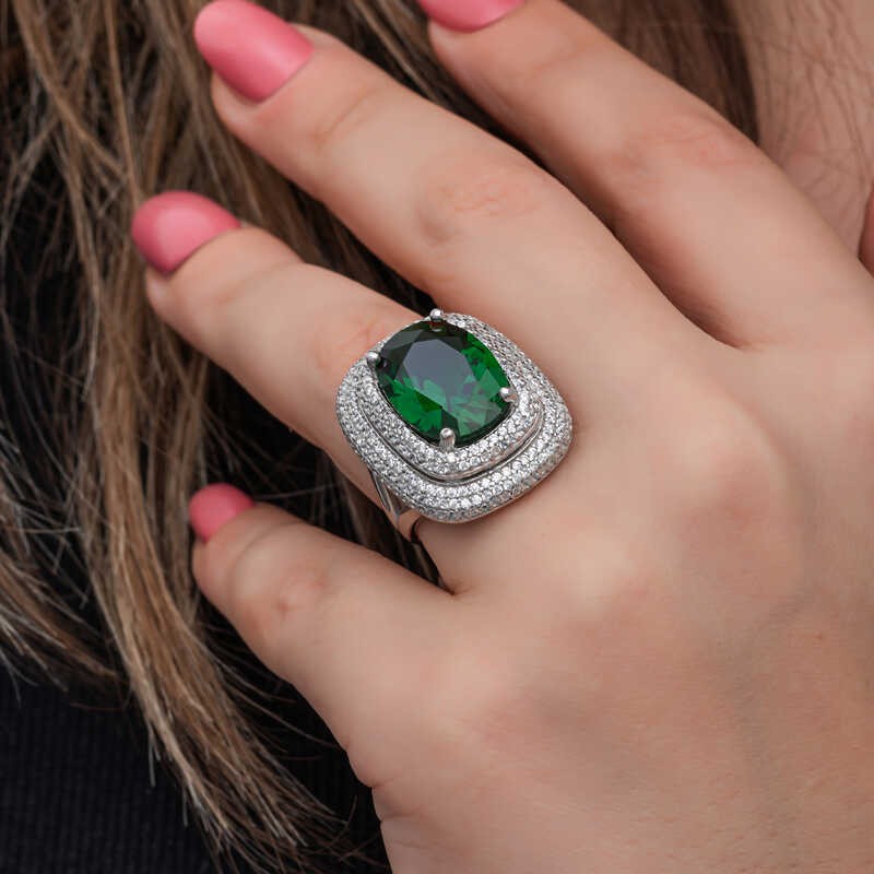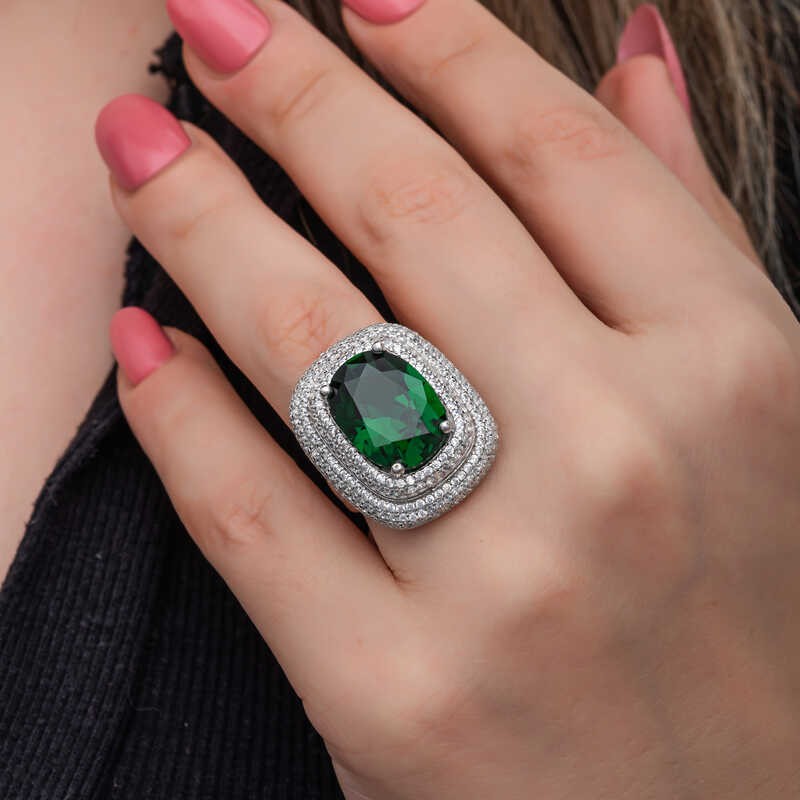 Gümüş Yeşil Zirkon Taşlı Kadın Yüzük