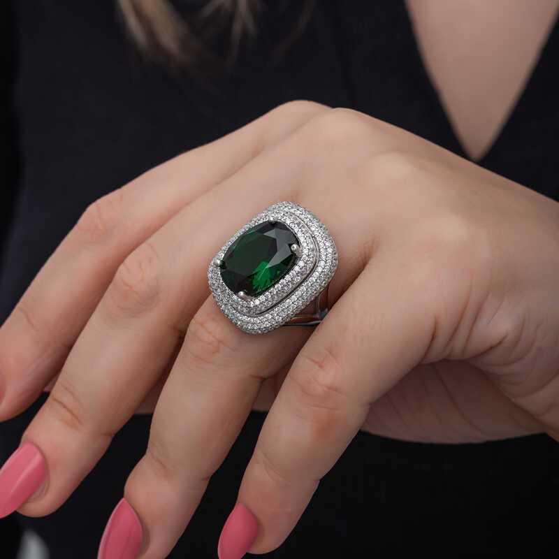 Yüzyıllardır imajınızın simgesi olan takılar, birbirinden özel tasarım koleksiyonlarda sizlerle buluşuyor. Günlük hayatınızdan özel günlerinize kadar her anınızda yanınızda olan gümüş yüzük modelleriyle sizlerde tarzınızı yansıtın. Bu birbirinden farklı dikkat çekici tasarımlar sayesinde ruhunuza hitap eden yaratıcı özgünlüğü ortaya koymaya başlayın. Hayalinizdeki kombinleri gerçeğe dönüştürebileceğiniz gümüş yüzük çeşitleri ile girdiğiniz her ortamda ilgi çekici stiliniz ile ön plana çıkmak artık çok kolay... Yeşil zirkon taşlı kadın yüzük 925 ayar gümüşten imal edilmiştir, üzerine rodyum kaplama yapılmıştır. Gümüş yüzük modellerimizin tamamı el emeği ile üretilmiştir. Gümüş ve değerli taşlar nedeniyle belirtilen ortalama ürün ağırlığında ± %10 sapma olabilmektedir.