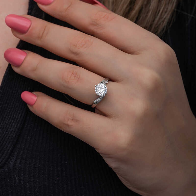 Bu özel tasarım tek taş yüzük 925 ayar gümüşten imal edilmiştir. Gümüş üzerine rodyum kaplama yapılmıştır. Rodyum kaplama yapılan kadın gümüş yüzük modelleri parlaklığını uzun süre muhafaza eder, oksitlenmesi gecikir. Yüzük üzerinde bulunan taşlar zirkondur. Sevdiğinize doğum günü, sevgililer günü ve özel günlerde verebileceğiniz mükemmel bir hediye seçeneğidir. Gümüş kadın yüzük modellerimizin tamamında olduğu gibi bu tek taş kadın yüzük de tamamen el emeği ile üretilmiştir. Gümüş ve değerli taşlar nedeniyle belirtilen ortalama ürün ağırlığında ± %10 sapma olabilmektedir.