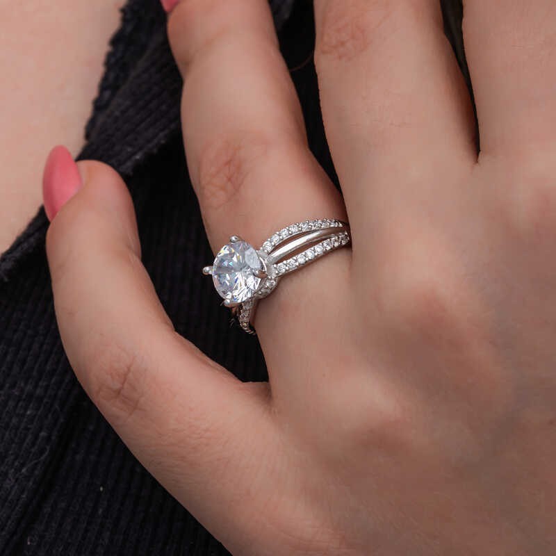 Bu özel tasarım tek taş yüzük 925 ayar gümüşten imal edilmiştir. Gümüş üzerine rodyum kaplama yapılmıştır. Rodyum kaplama yapılan kadın gümüş yüzük modelleri parlaklığını uzun süre muhafaza eder, oksitlenmesi gecikir. Yüzük üzerinde bulunan taşlar zirkondur. Sevdiğinize doğum günü, sevgililer günü ve özel günlerde verebileceğiniz mükemmel bir hediye seçeneğidir. Gümüş kadın yüzük modellerimizin tamamında olduğu gibi bu tek taş kadın yüzük de tamamen el emeği ile üretilmiştir. Gümüş ve değerli taşlar nedeniyle belirtilen ortalama ürün ağırlığında ± %10 sapma olabilmektedir.
